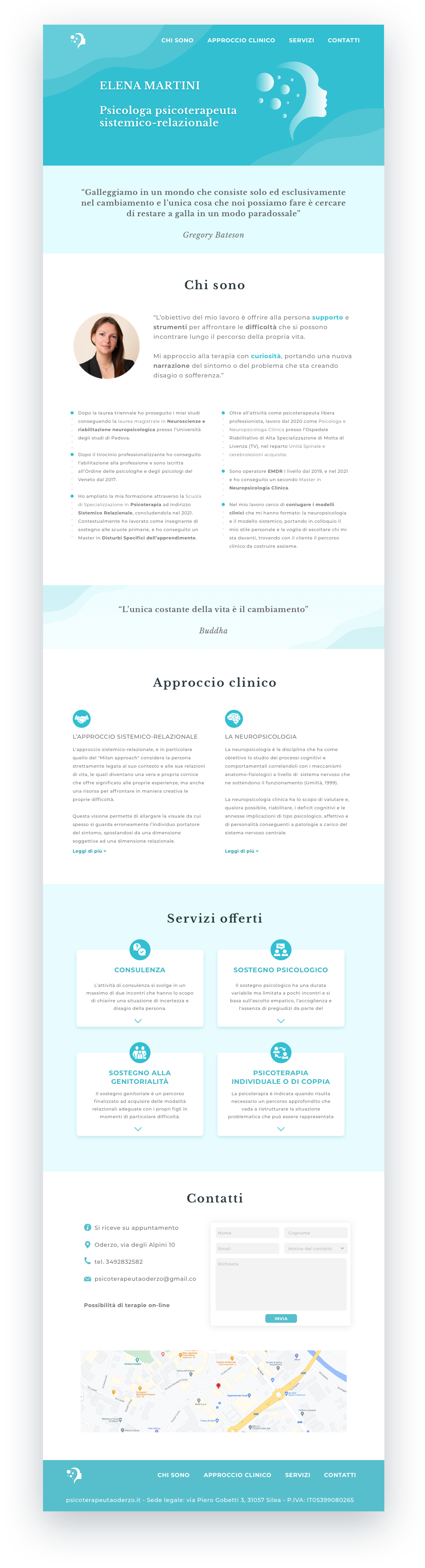 Per avviare la nuova attività di psicologa, Elena aveva bisogno di un nuovo sito vetrina che raccontasse i suoi servizi di psicoterapia e raccogliesse nuovi contatti di futuri pazienti.