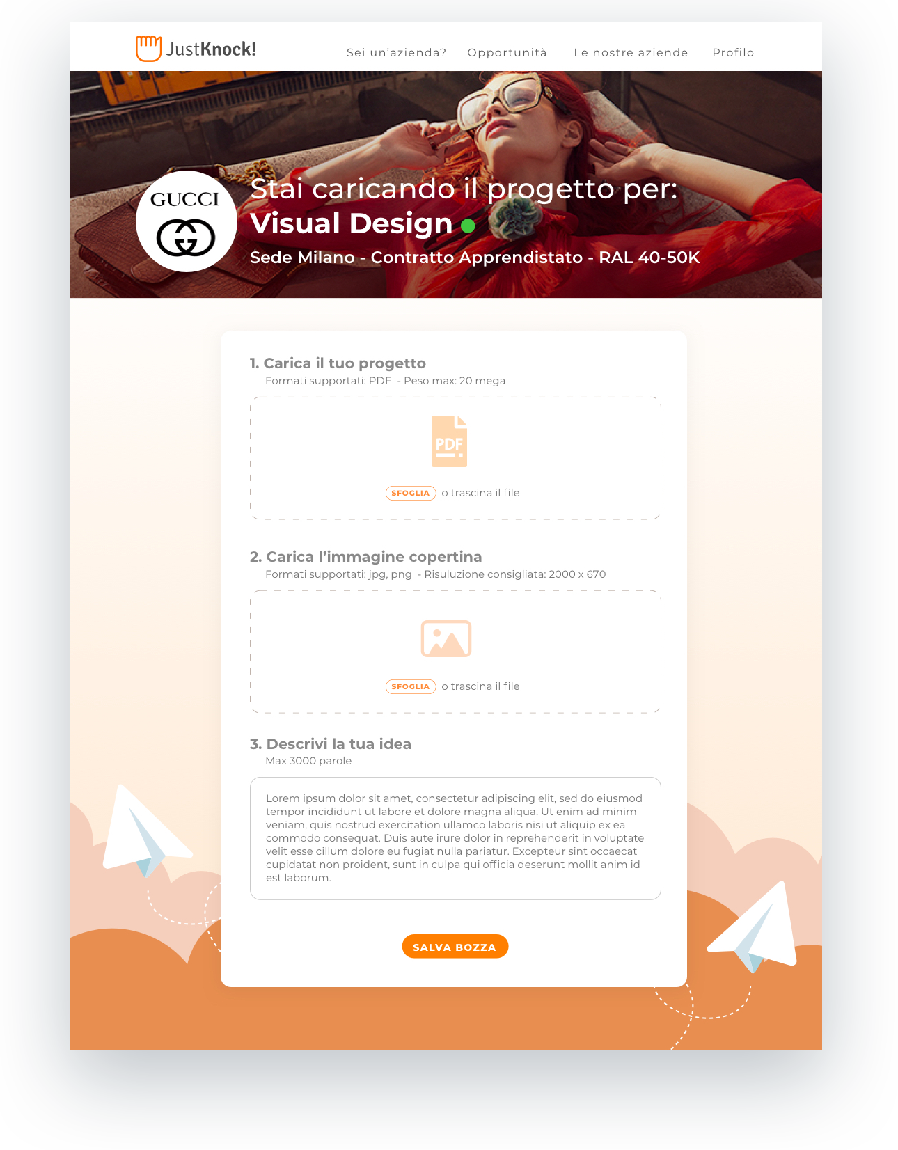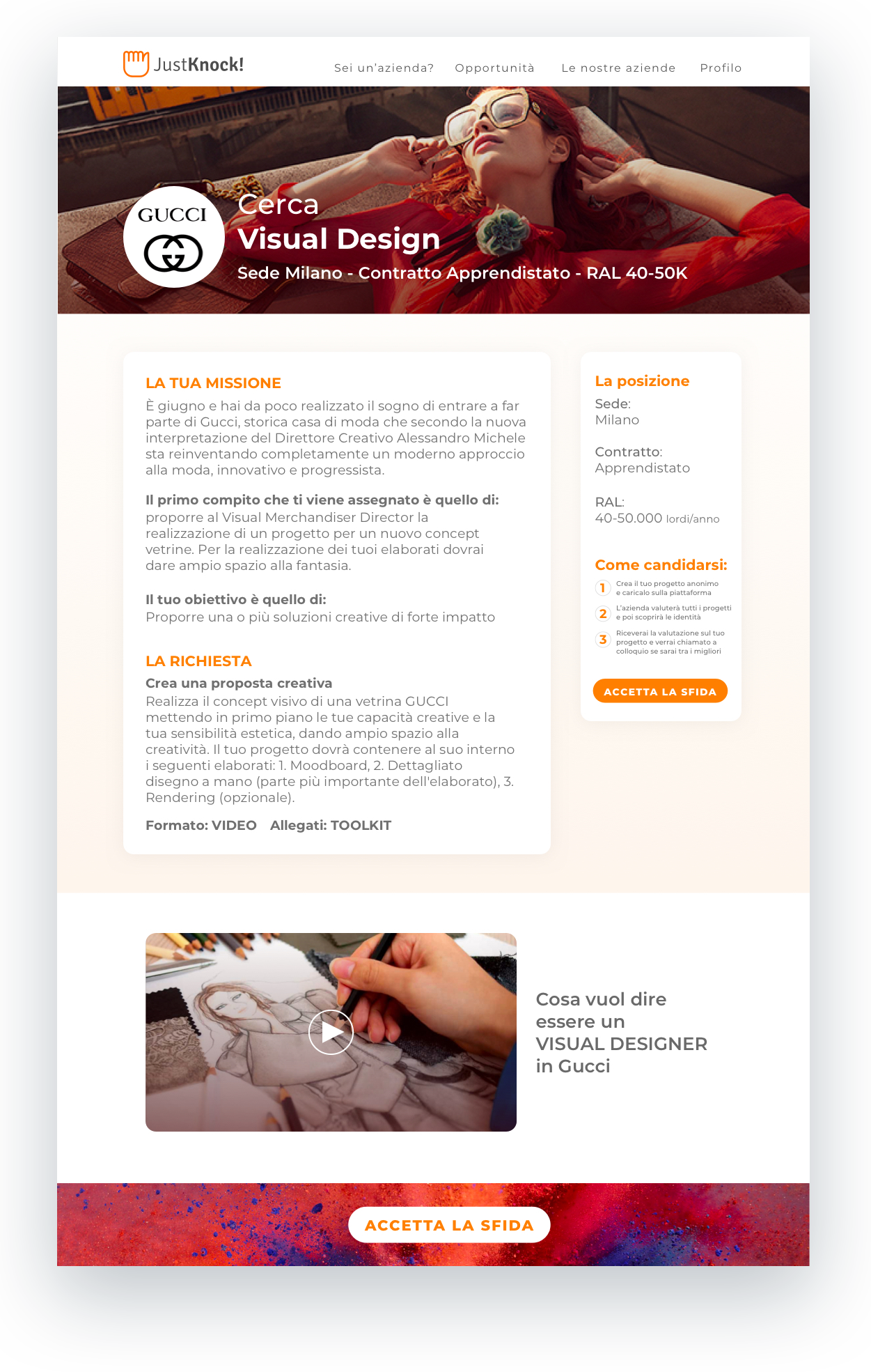 Just Knock innova il comune processo di selezione del personale usando questo meccanismo: 1) Il candidato carica un progetto anonimo in risposta ad un business case dato dall’azienda 2) L’azienda voterà tutti i progetti, poi potrà svelare l’identità degli autori e chiamare a colloquio i migliori.