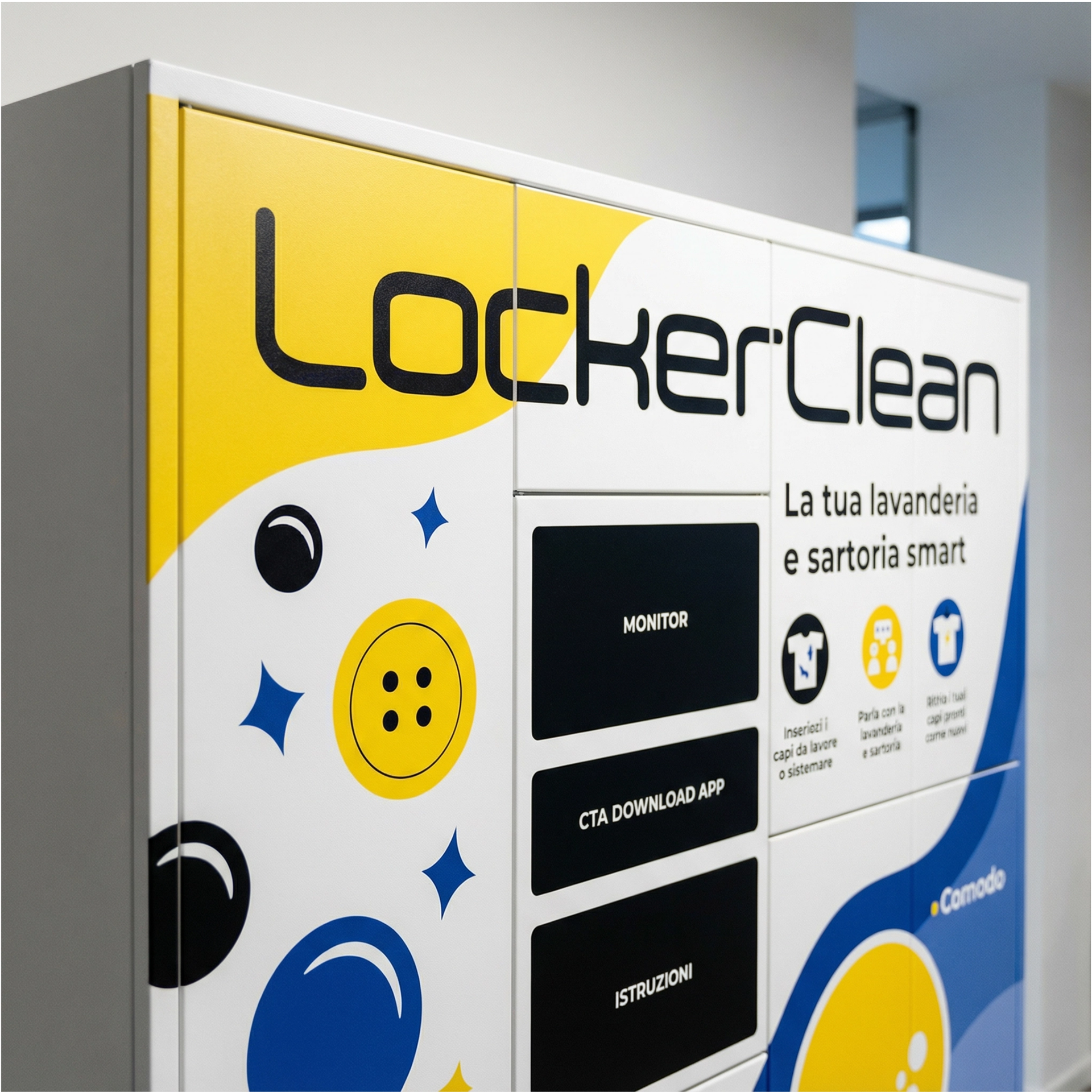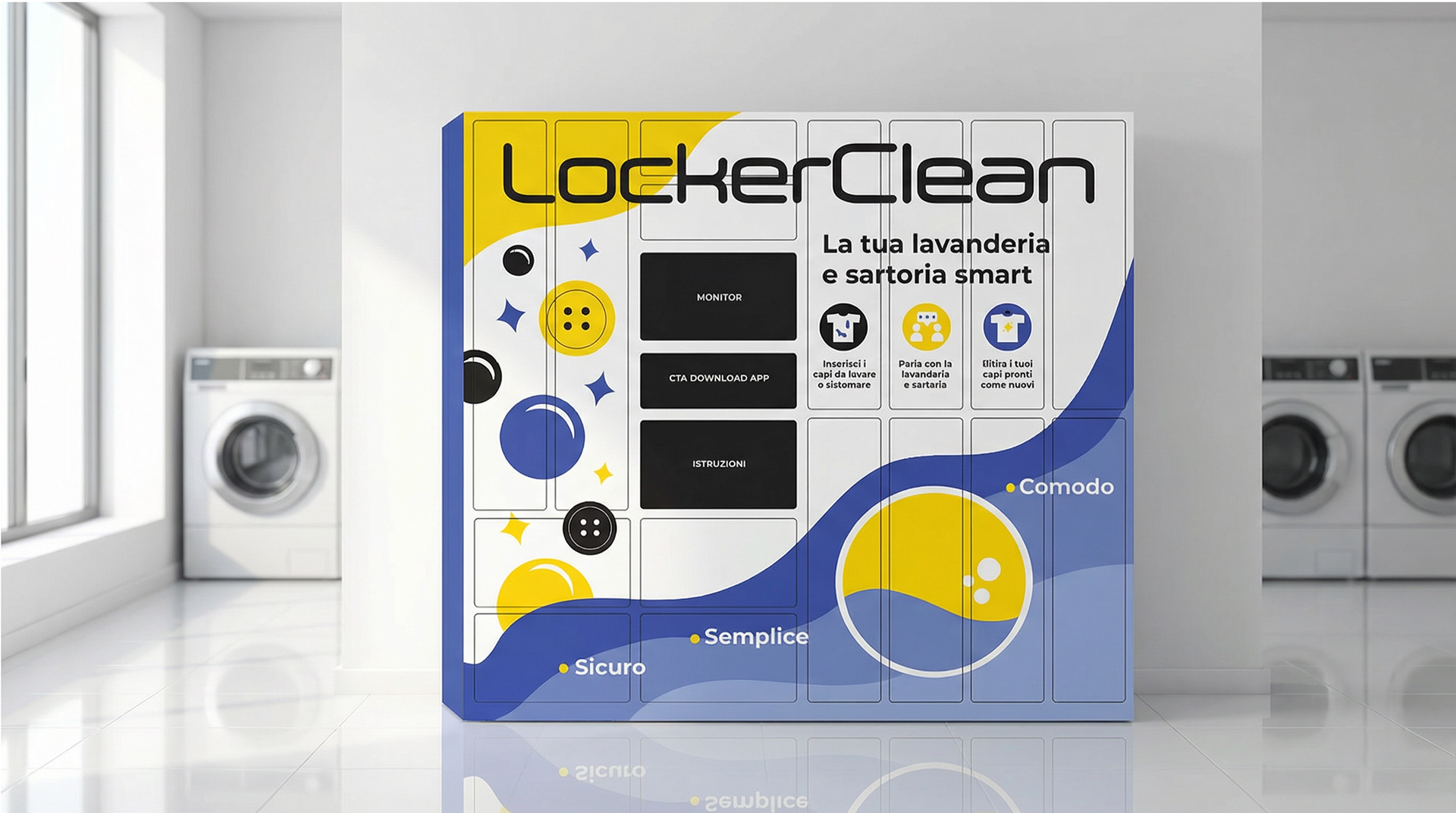 Locker Clean opera nel settore della pulitura a secco e per questa azienda ho realizzato la bozza per la grafica da apporre sui loro smartlocker personalizzati che verrano utilizzati dagli utenti per inserire e ritirare i capi da lavare e sistemare su richiesta.