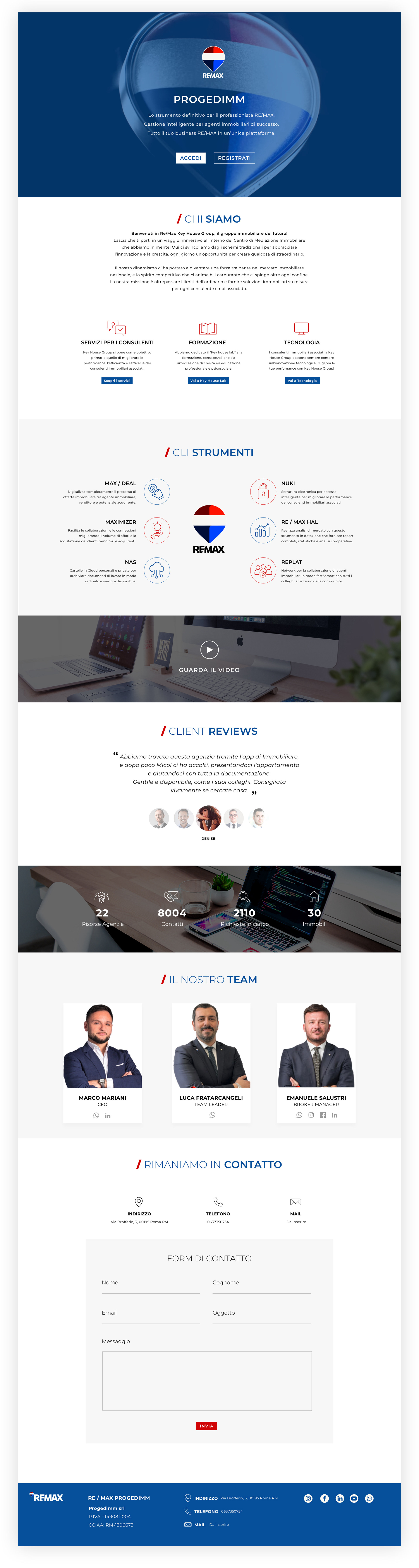 Per RE/MAX Progedimm, punto di riferimento a Roma per la vendita e l'affitto di case, appartamenti e immobili, ho realizzato una landing page che porterà alle pagine interne dedicate agli agenti immobiliari