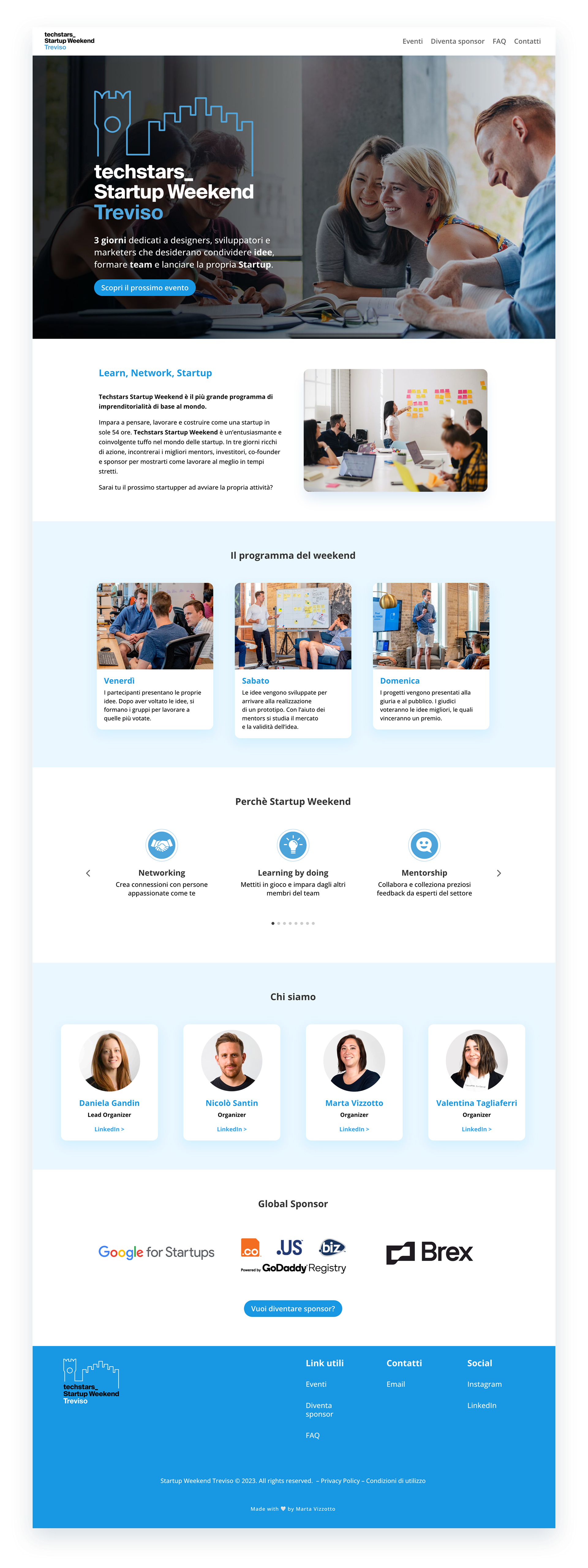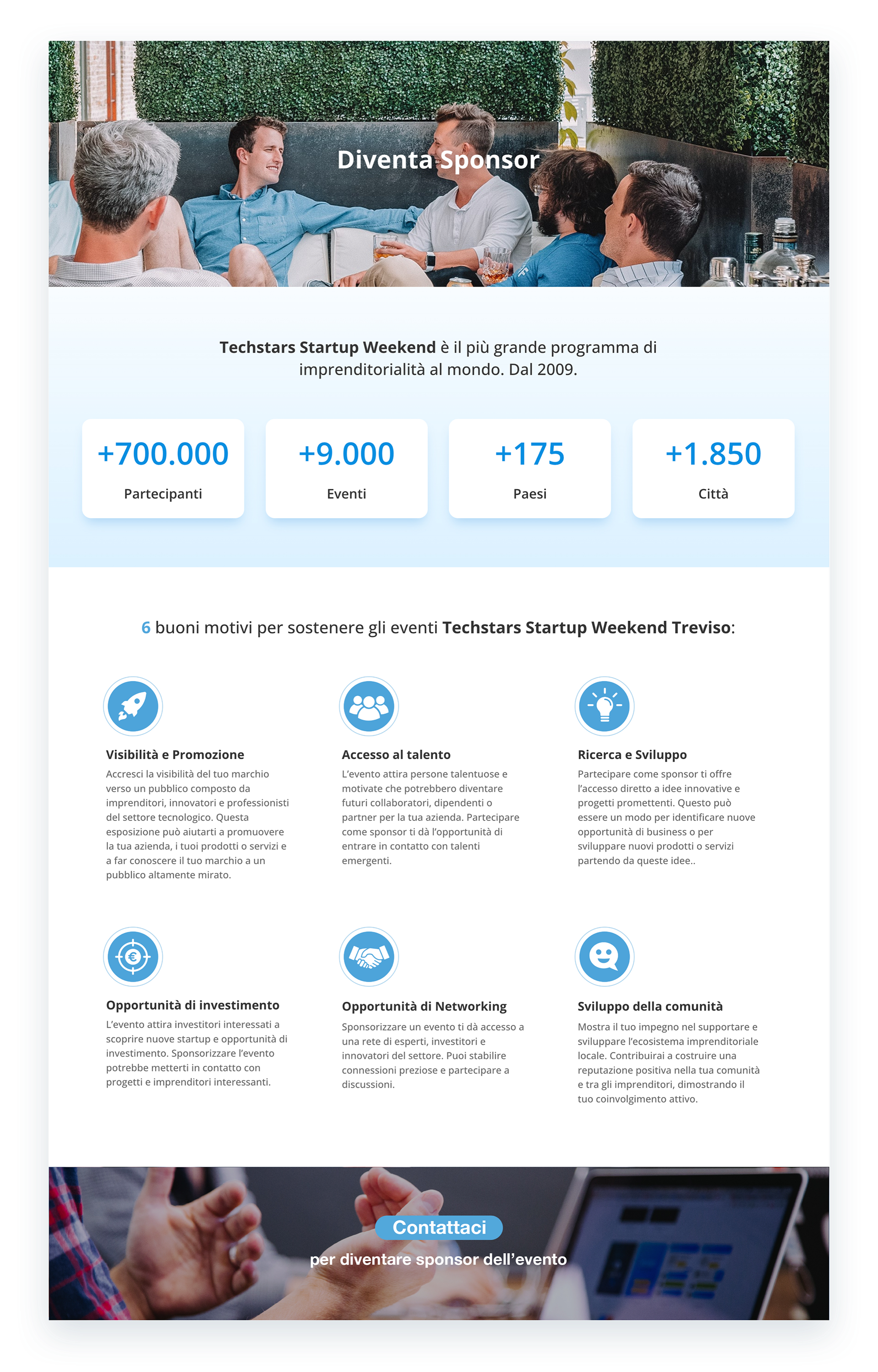 Il sito è composto da svariate pagine tra cui un’homepage in cui si racconta in cosa consiste l’evento alla sua prima edizione, una sezione dedicata agli investitori e una dedicata al prossimo evento con tutti i dettagli utili per i partecipanti.
